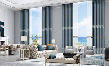把窗簾放在窗簾架上,利用設(shè)備自帶120度高溫蒸汽對(duì)織物進(jìn)行均勻的高溫蒸燙。